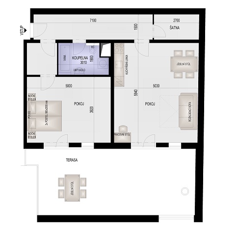 Vzorová ukázka standardního zařízení bytu.